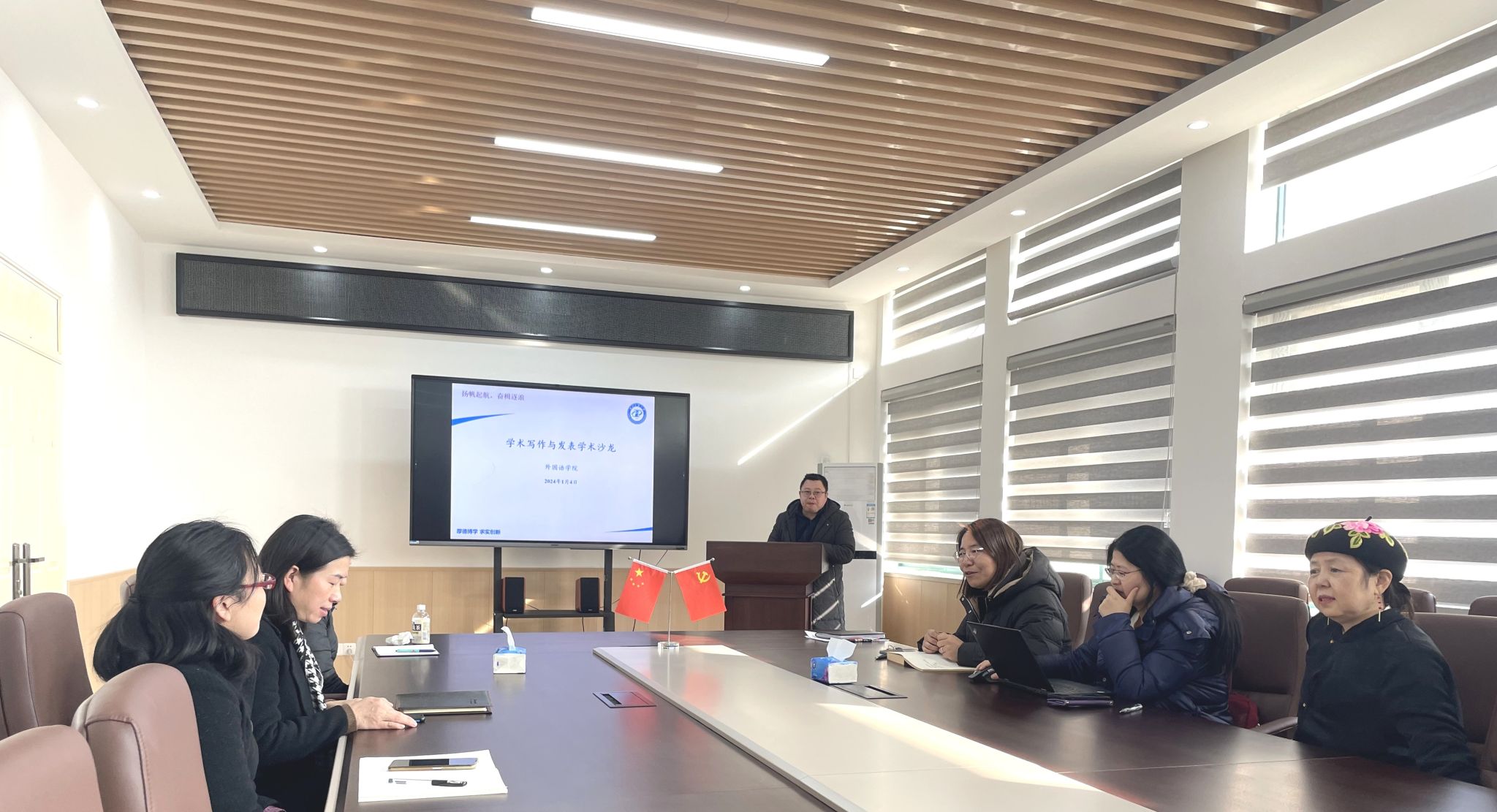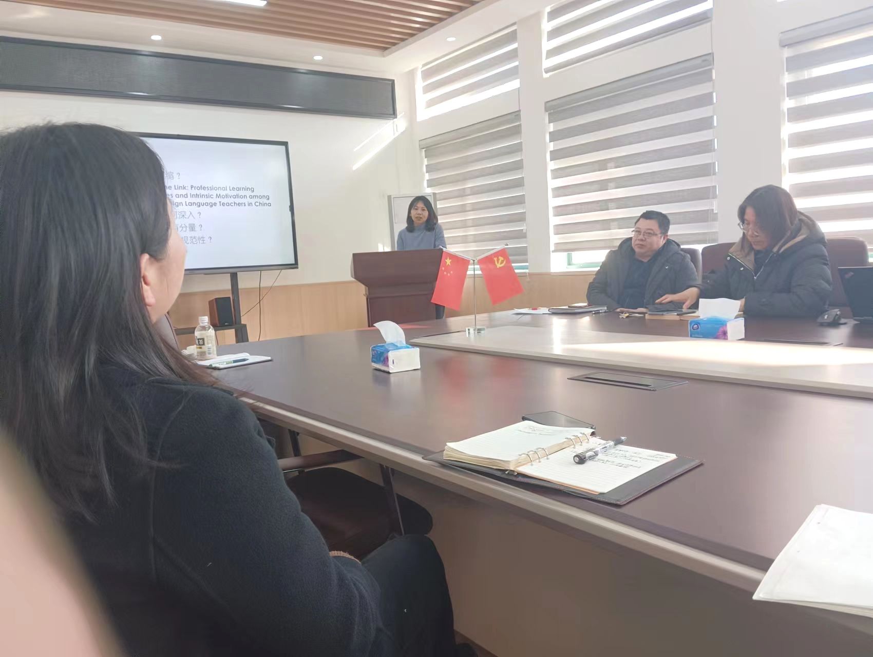 2024年1月4日下午,学院在1001会议室举办了以“高效外语教师职业学习共同体与内在动机关系研究”为主题的学术写作与发表学术沙龙。沙龙由副院长李池利主持并点评,龙春秀老师进行分享,院长鲁修红及外语教育研究中心团队负责人黄广芳等多名教师参加。
