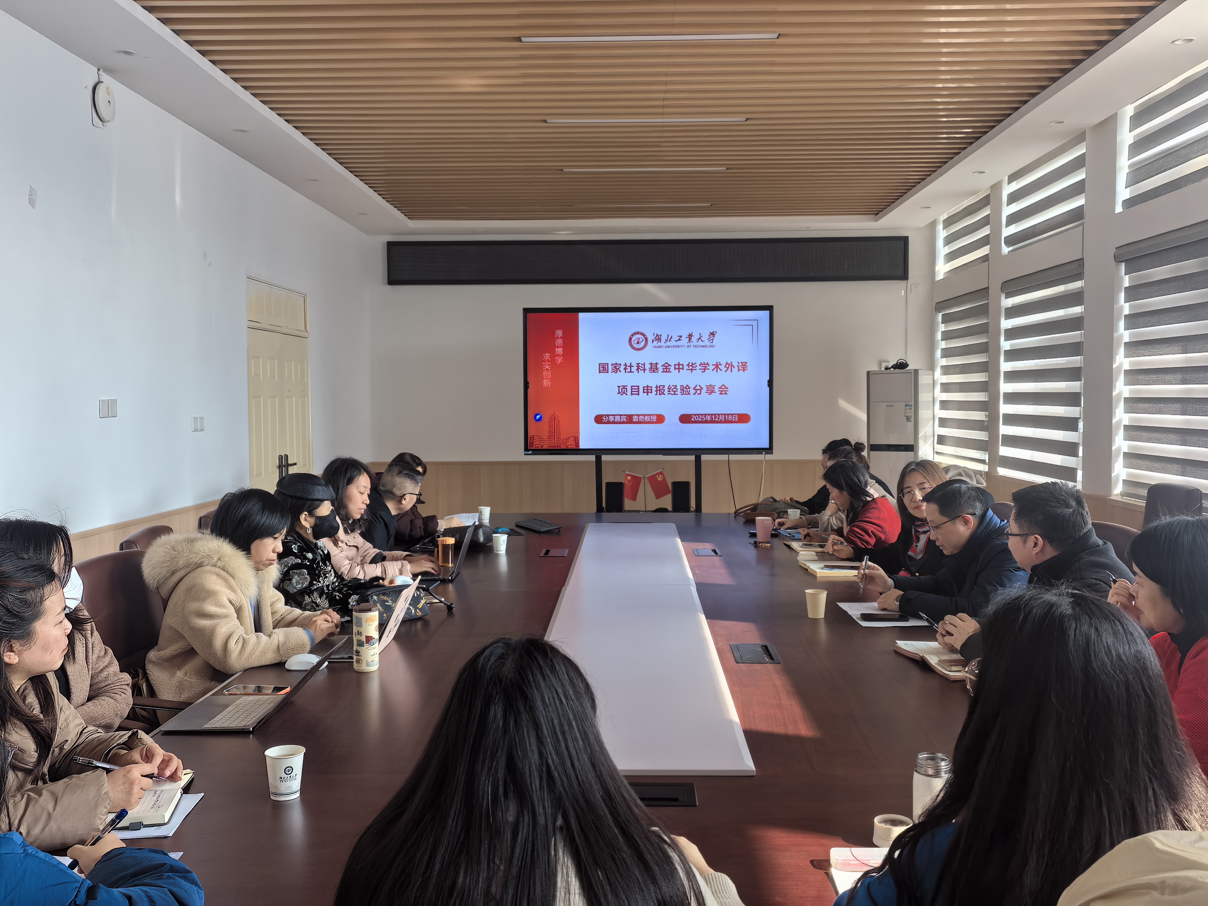 12月18日13:00-19:00,外国语学院“国家社科基金中华学术外译项目申报座谈会”与“国家级科研项目申报指导”在文科楼1001室举行。学院特别邀请中南财经政法大学外国语学院的袁奇教授与李晶教授为大家分享项目申报经验,并对有意向申报国家级项目的教师进行一对一的交流辅导。两场座谈会都由院长鲁修红主持,学院领导与各系部教师代表参会。
