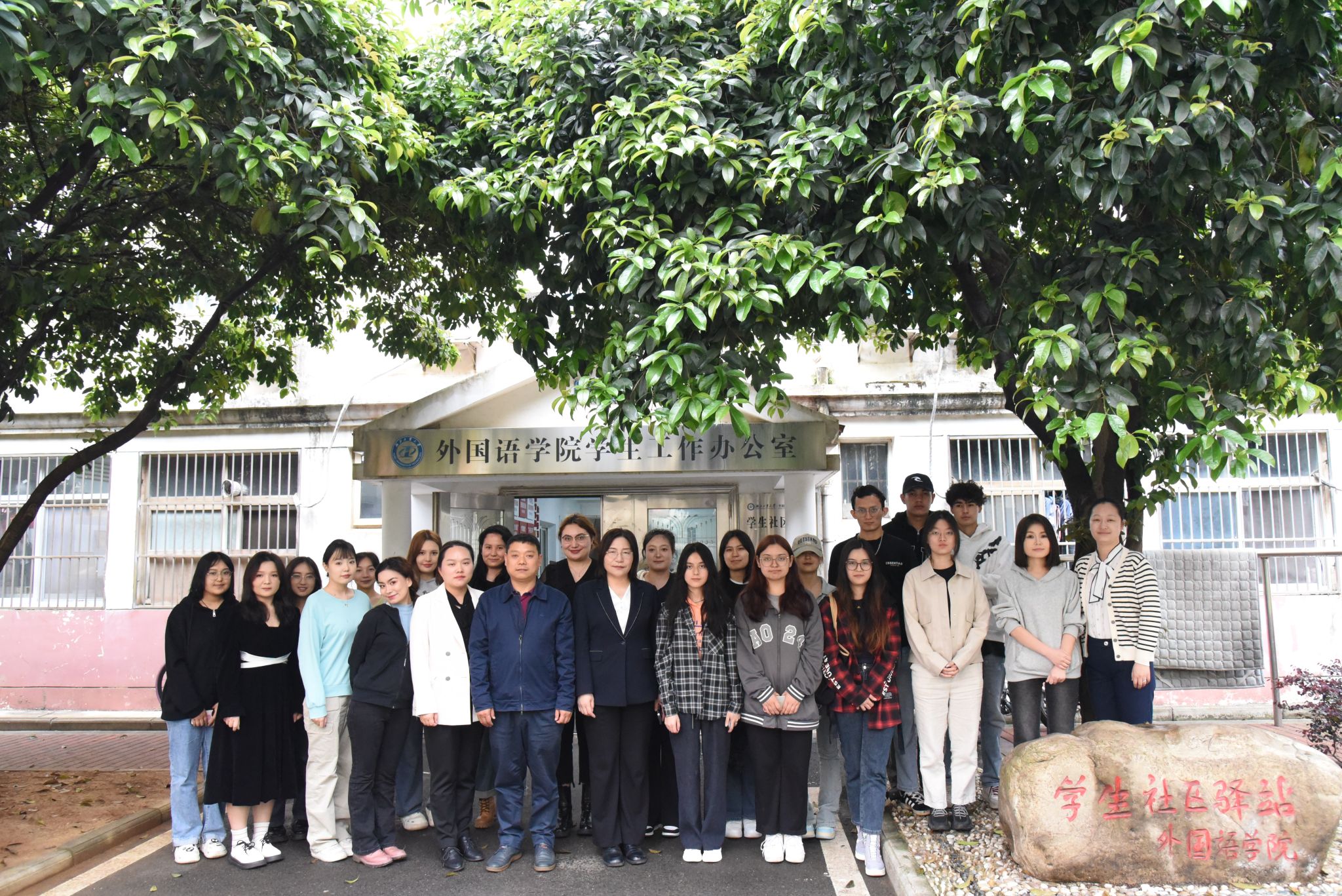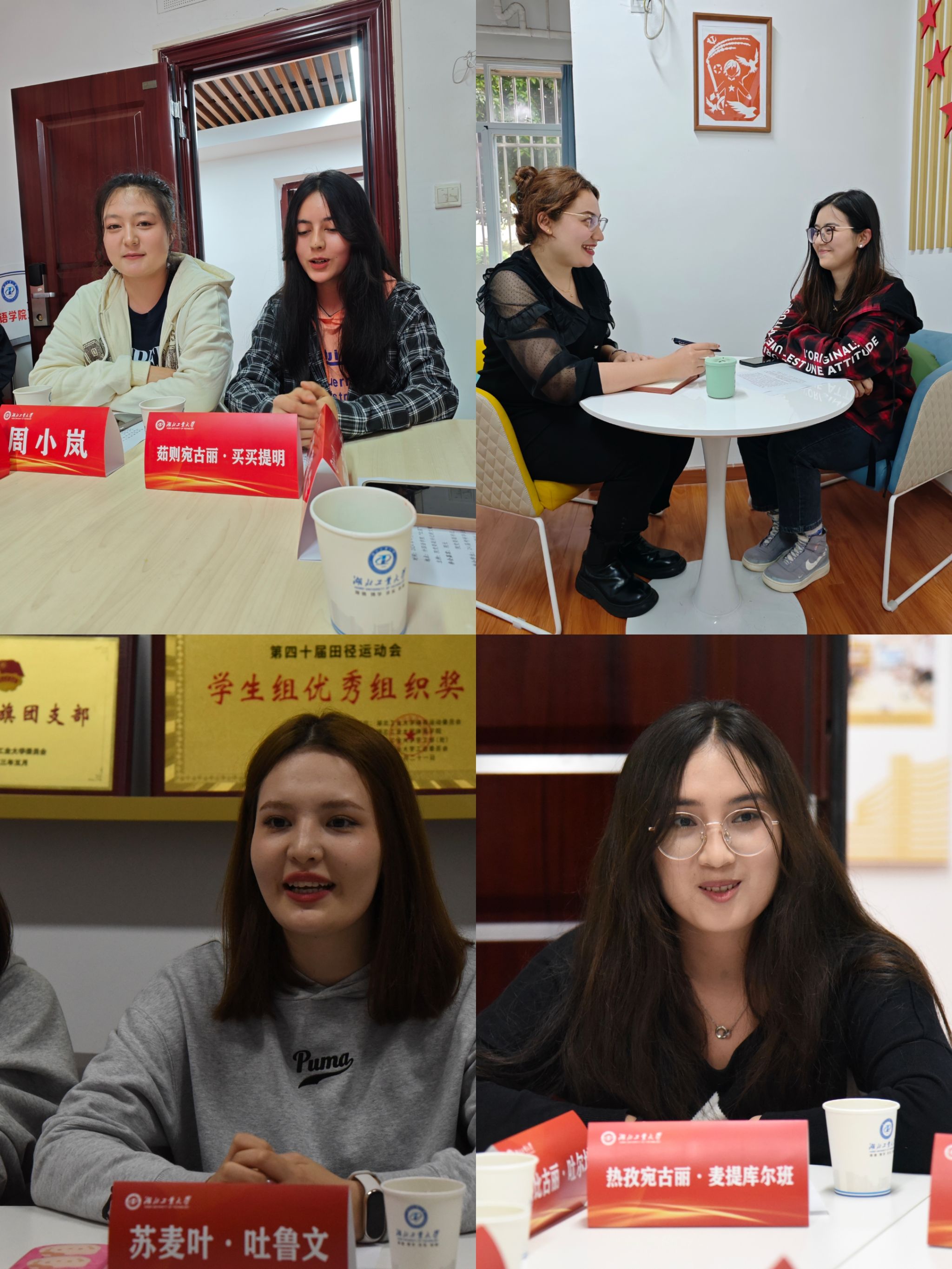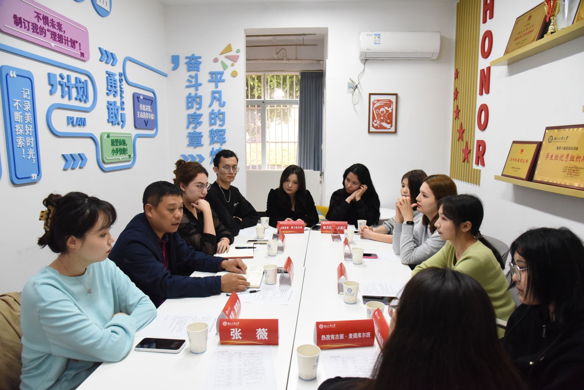 4月11日下午,外国语学院在“红星”一站式学生社区召开少数民族学生座谈会。外国语学院党委书记张志国、院长鲁修红、党委副书记胡文敏、学工办主任张薇、校学工部少数民族辅导员卡米拉老师与同学们深入座谈、交心谈心。