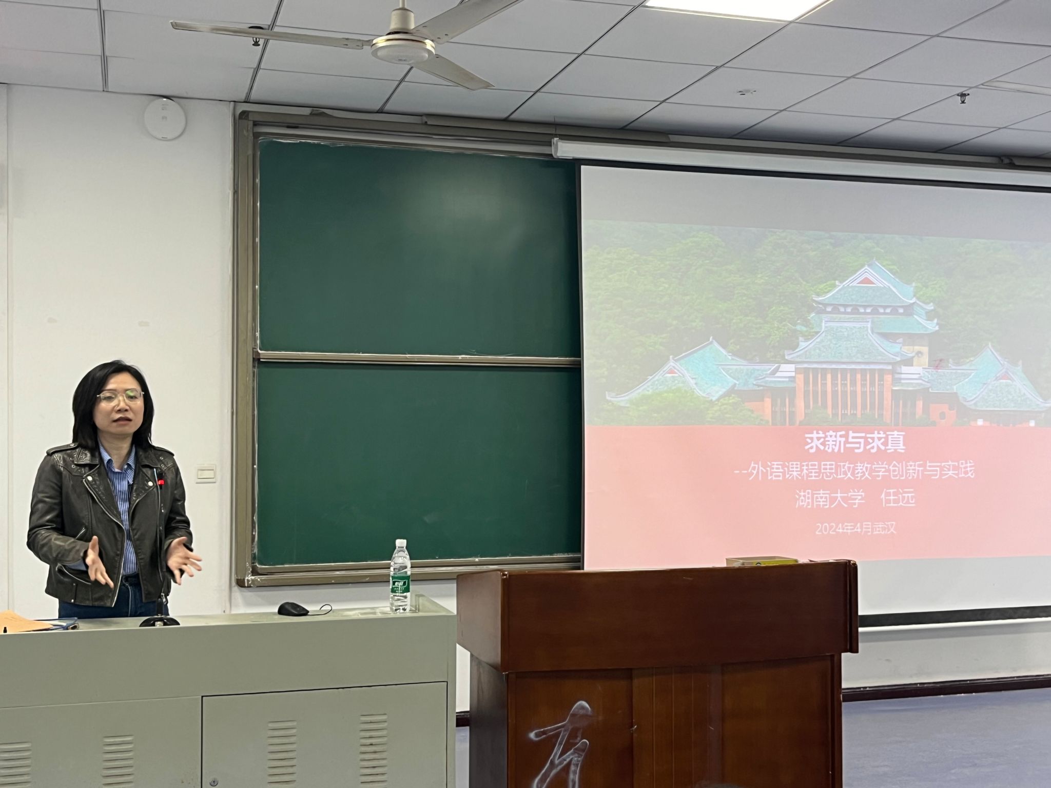 4月11日下午,湖南大学任远教授应邀来我院为全体教师作了题为《求新与求真——外语课程思政教学创新与实践》的专题讲座,讲座由外国语学院副院长黄广芳主持。