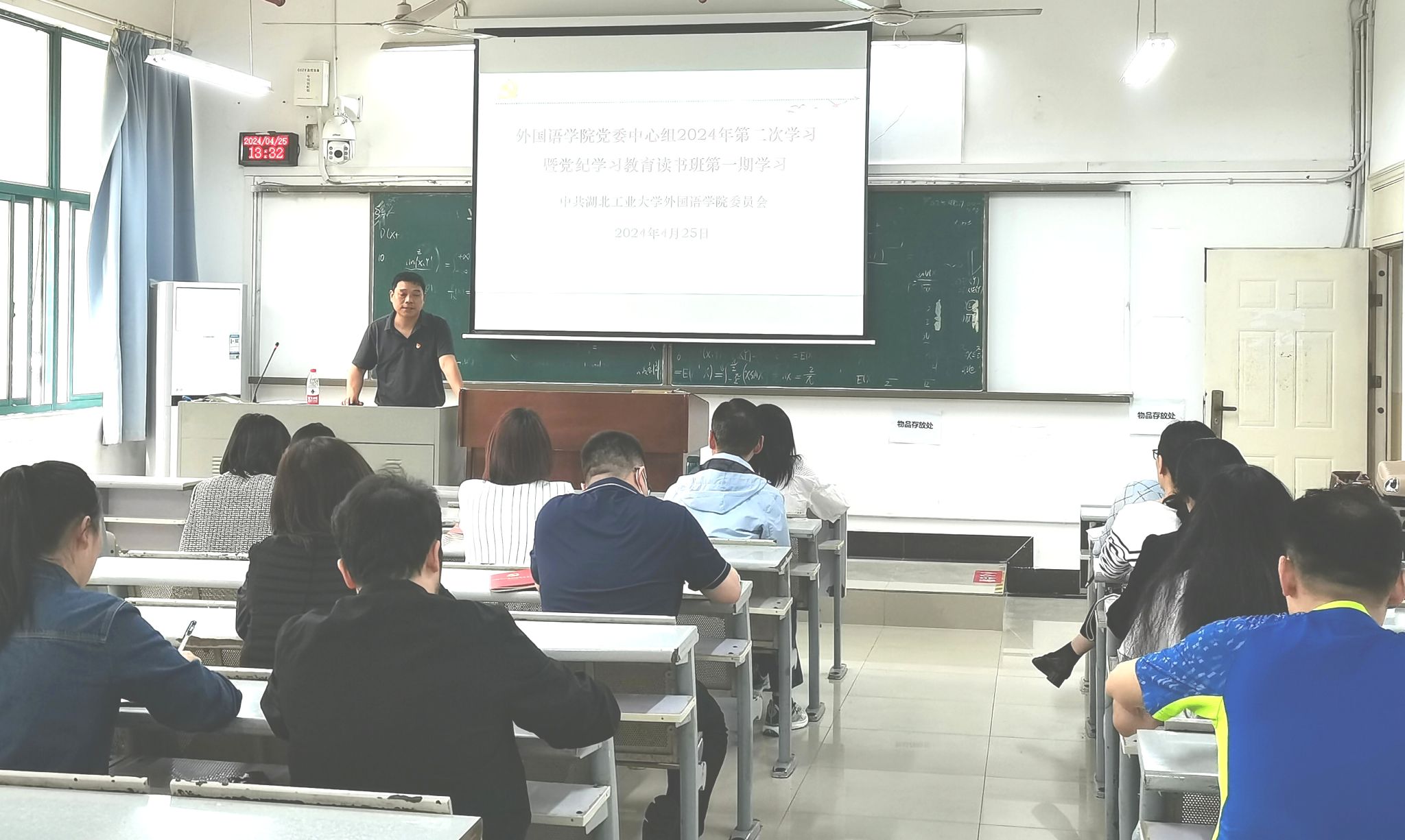 4月25日下午,外国语学院党委在文科楼3-101室召开党纪学习教育第1期读书班暨院党委理论学习中心组第二次专题学习会。会议由学院党委书记张志国主持,学院党委委员、党支部书记和系部主任参加学习。
