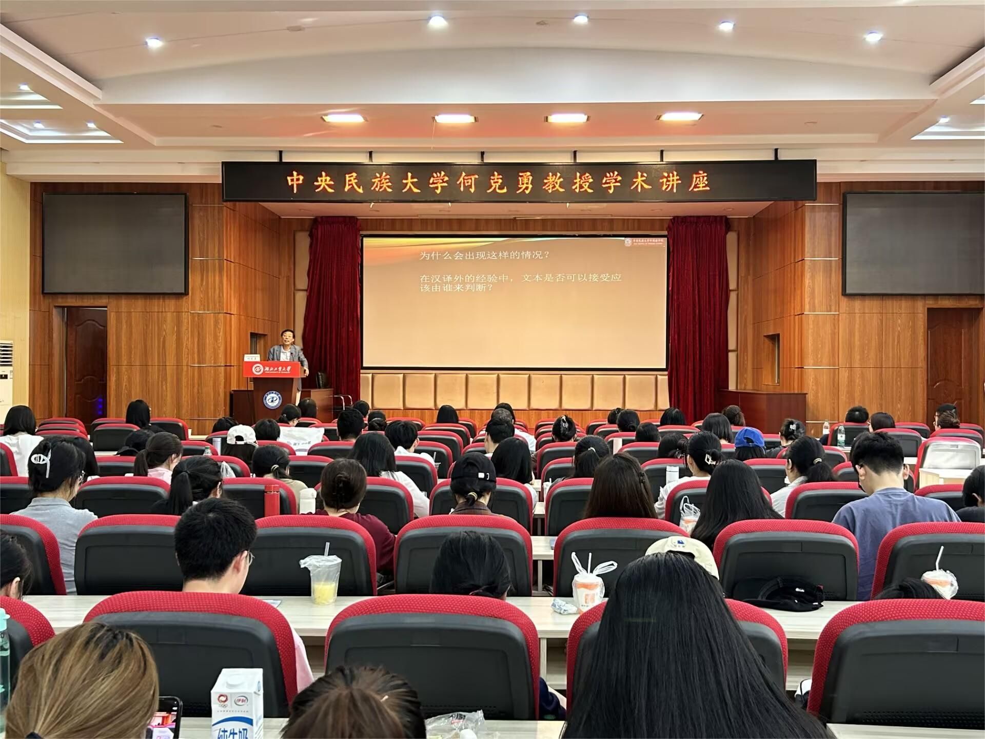 9月20日上午,全体2024级研究生新生参加了在博学堂举办的题为“中国文化国际传播中的受众接受”讲座,中央民族大学外国语学院二级教授、博士生导师为新生授课。