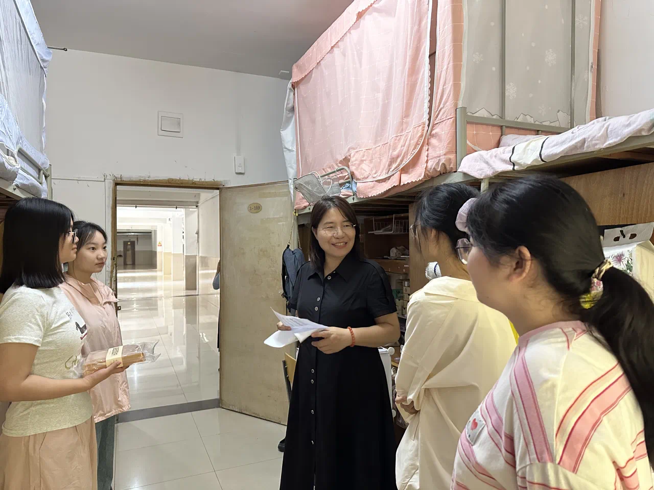 9月15日,外国语学院领导深入研究生寝室,与新生亲切交流,详细了解同学们的住宿和生活情况,询问是否有困难和需求,勉励同学们积极面对挑战,努力学习。鲁修红院长代表学院向新生代表赠送了书籍和月饼,让大家切实感受到了节日温暖。