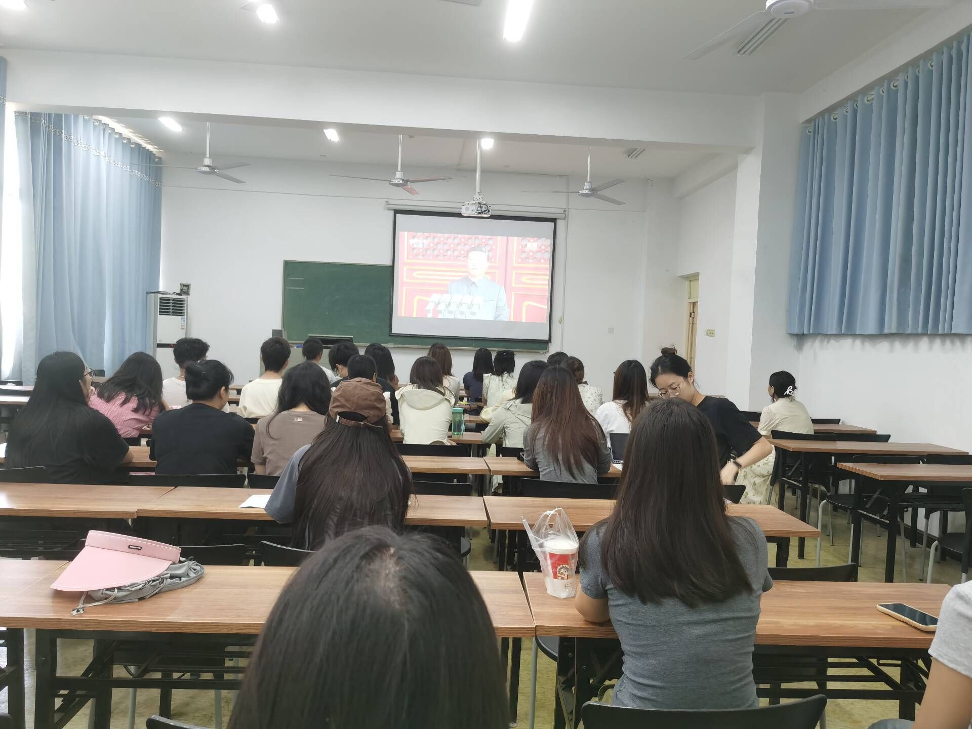 三个分会场现场气氛庄重而热烈。在直播开始前,学院副院长李池利为研究生分会场的同学们讲解了中国人民抗日战争暨世界反法西斯战争胜利的重大意义,以及9月3日被设立为中国人民抗日战争胜利纪念日的缘由和深刻内涵。李池利的讲述让同学们深刻感受到了和平的珍贵与历史的厚重。