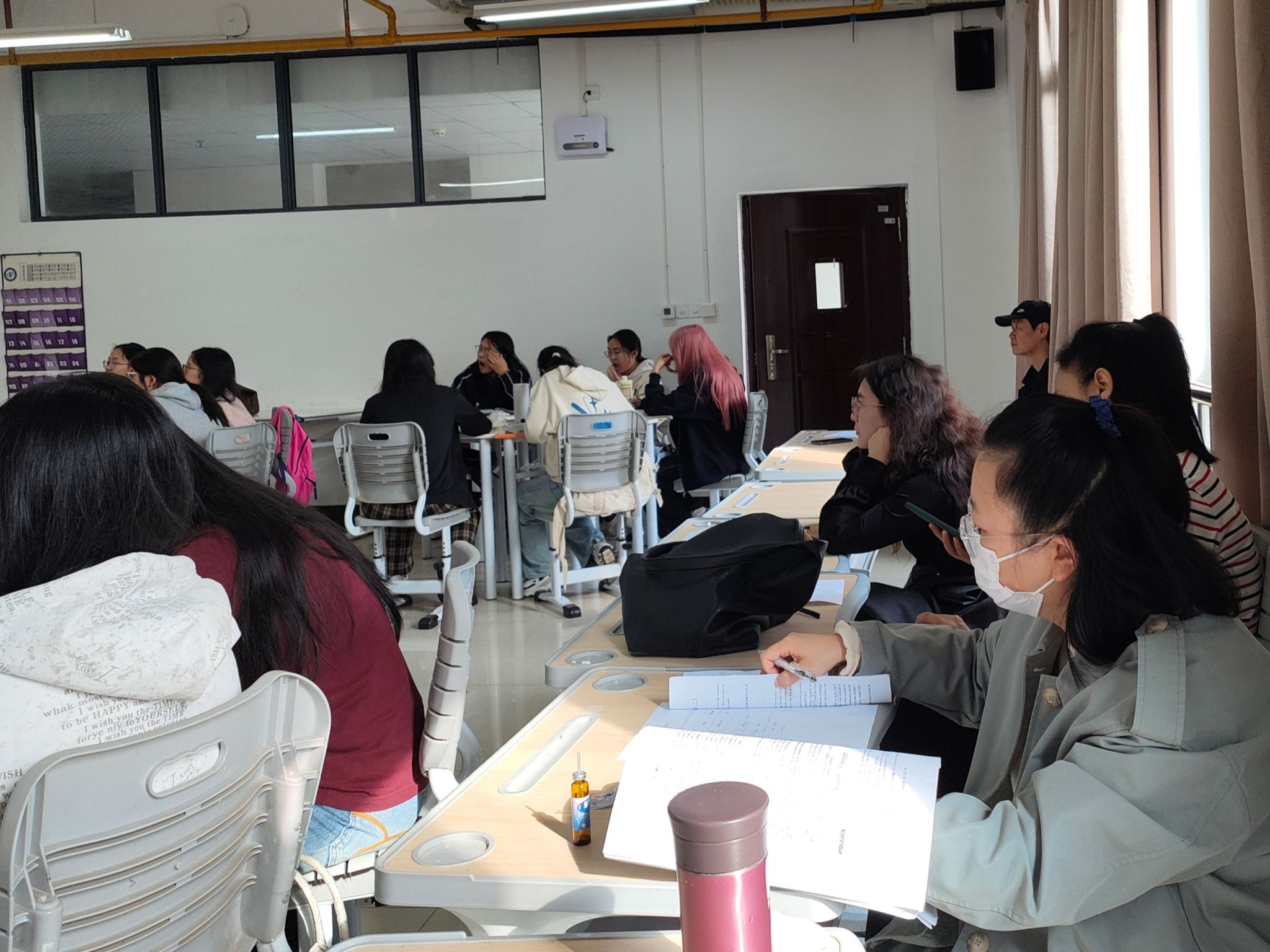 观摩课引起老师们的积极反响。陈认真老师评价道:“吴林老师的课堂组织能力很强,授课内容丰富,特别善于和学生互动。”付容容老师在观摩后感言到,“作为新进教师,我有很多需要向吴林老师学习的地方。她授课材料准备丰富,时代感和人文性在课堂中很好地得到展示,课后作业与课堂内容关联非常紧密,能很好地辅助和深化教学,效果非常好。”