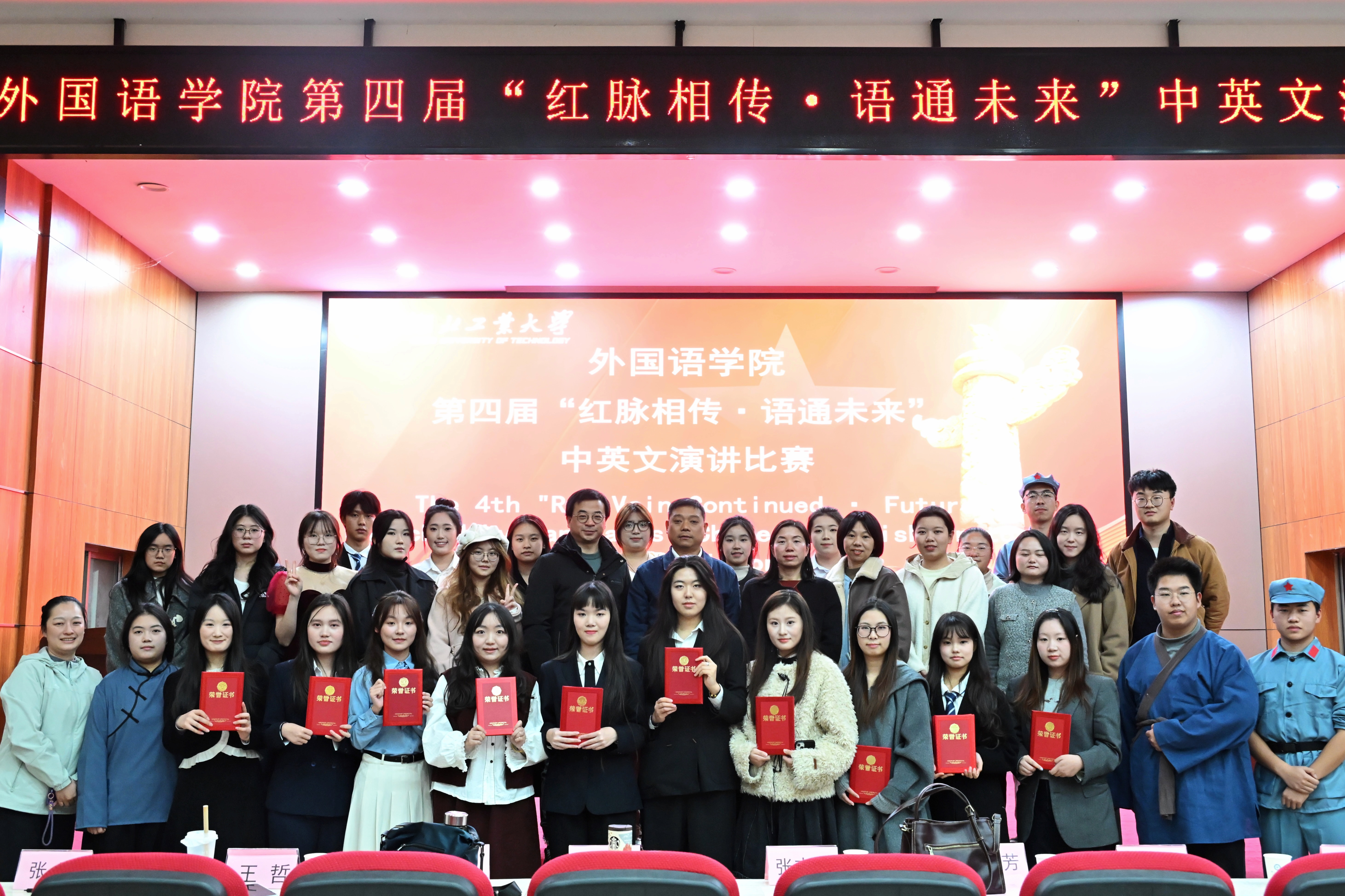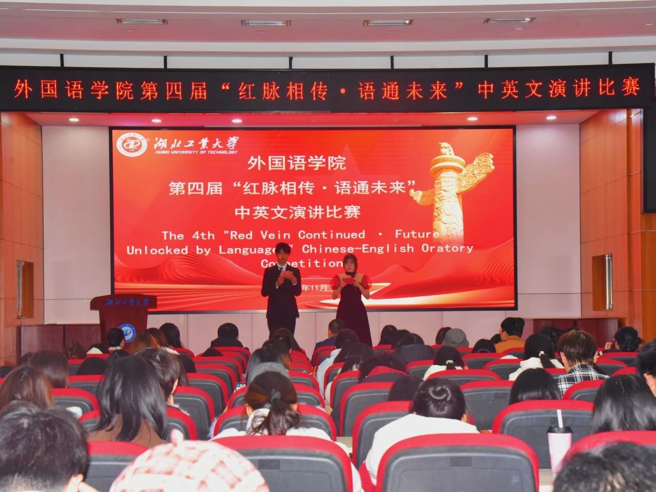 为深入推进党史学习教育与外语专业特色有机融合,引导青年学子以英语为桥梁传承红色基因,11月27日下午,外国语学院第四届“红脉相传·语通未来”中英文党史演讲比赛在博学堂顺利举行。学院领导班子、各系部书记、主任、专业教师代表担任评委,第82期分党校学员及各年级学生代表近200人参加活动。