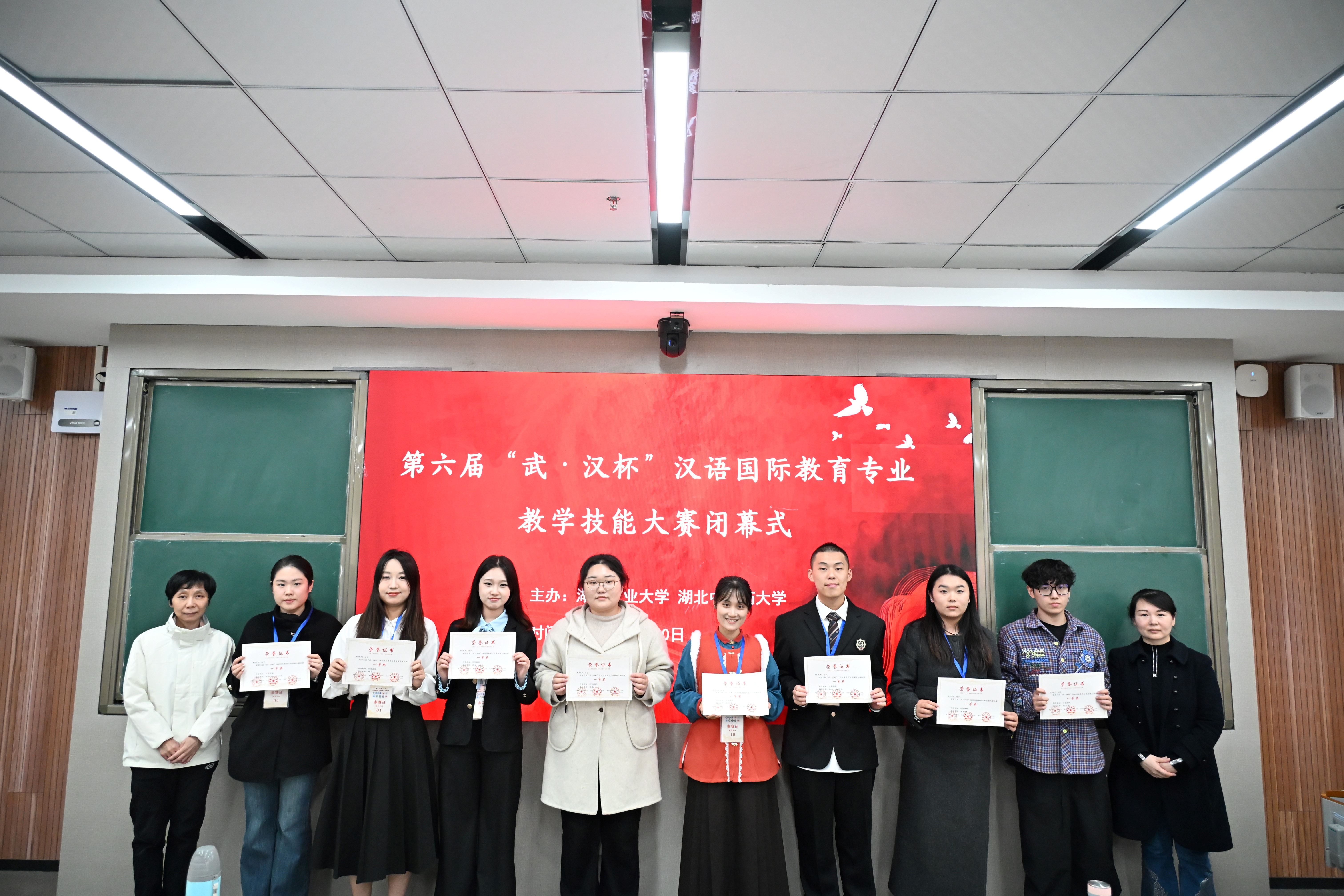 闭幕式由外国语学院语言文化传播系主任黄中辉主持。华中科技大学人文学院博士生导师骆琳教授、湖北第二师范学院文学院黄均凤副教授分别对研究生组、本科生组赛事进行专业点评。两位专家高度肯定了本次大赛的办赛质量,特别感谢我校六年来持续为区域内汉教专业搭建交流展示平台,并对全体参赛选手展现出的专业素养、教学热情和扎实功底给予好评。专家指出,“武·汉杯”精准契合国际中文教育的发展趋势,不仅是学子们锤炼专业技能的舞台,更是高校间探讨“文化+才艺+语言”融合教学模式的交流平台,已成为湖北省暨武汉地区具有广泛影响力的专业品牌赛事。