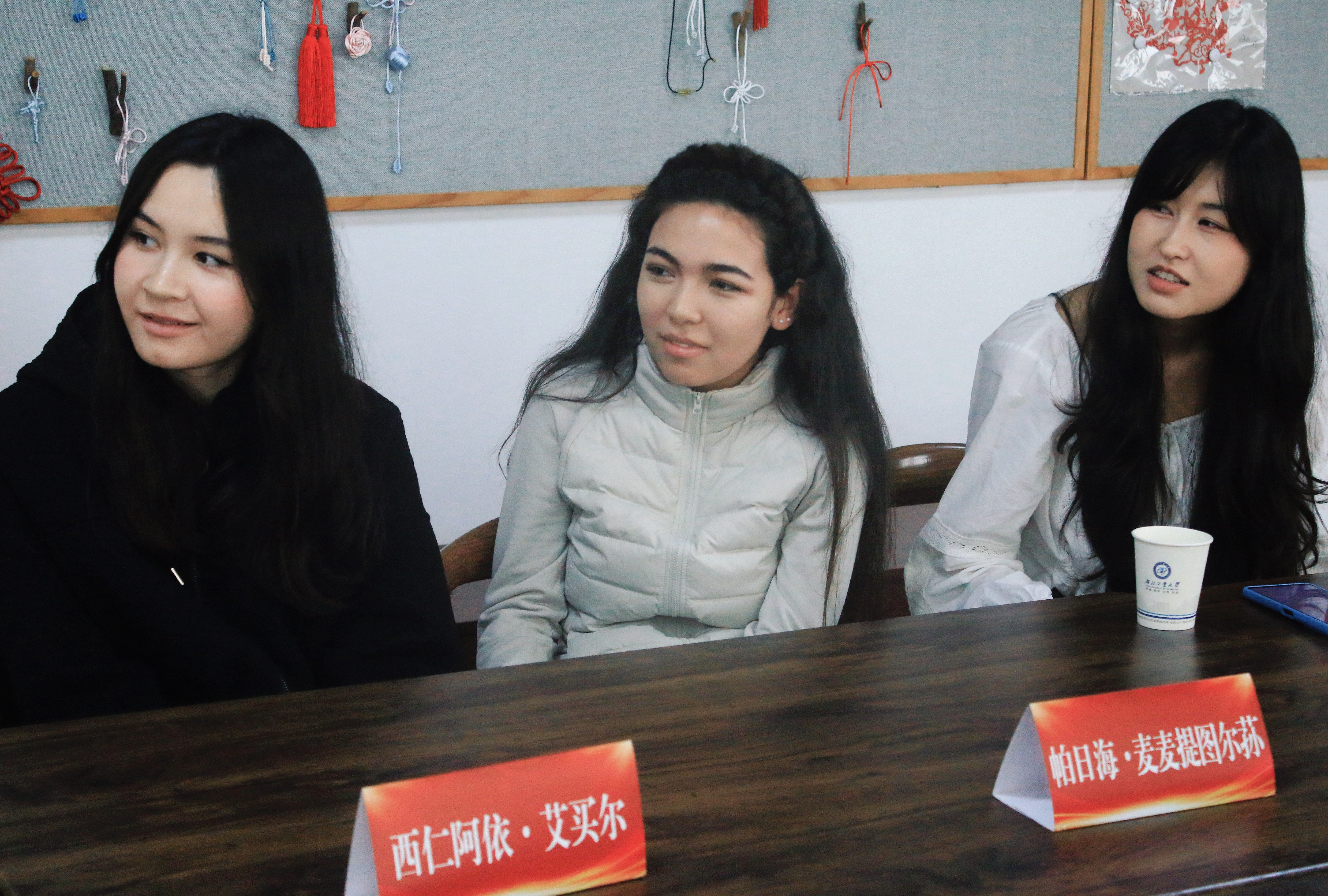 座谈会上,四位在就业、考研、学生工作和学业发展等方面表现突出的优秀学生代表依次发言,分享了成长历程与心得体会。2022级汉语国际教育专业特留·江古尔同学(哈萨克族)成功就职武汉小米公司,他鼓励学弟学妹们要坚定目标、主动出击,在实践中不断积累经验。2022级汉语国际教育专业爱丽菲娅·伊力旦同学(维吾尔族)顺利上岸本院研究生,她表示,热爱是坚持的动力,科学规划、稳住心态、劳逸结合是成功上岸的关键。2023级商务英语专业黄正兴同学(土家族)担任学院排球队队长,在运动会、“三下乡”社会实践、志愿服务中表现积极,并计划参军入伍,报效祖国。2023级英语专业周小岚同学(回族)学业成绩优异,她分享道,阅读是语言学习的根基,时间管理和实践探索是成长的加速器,鼓励学弟学妹们走出宿舍,用行动追逐梦想。