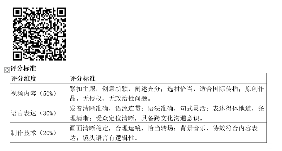 (2)参赛作品时长3至5分钟,旁白语言须为团队成员配音的英文音频(不可使用人工智能语言、剪辑软件内字幕配音等),并配有中英双语字幕,报名时须同时提交word格式的中英字幕稿件。