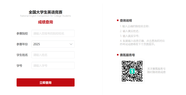 查询初赛成绩方式:学生可点击此链接输入学校 名称、姓名、学号查询成绩。