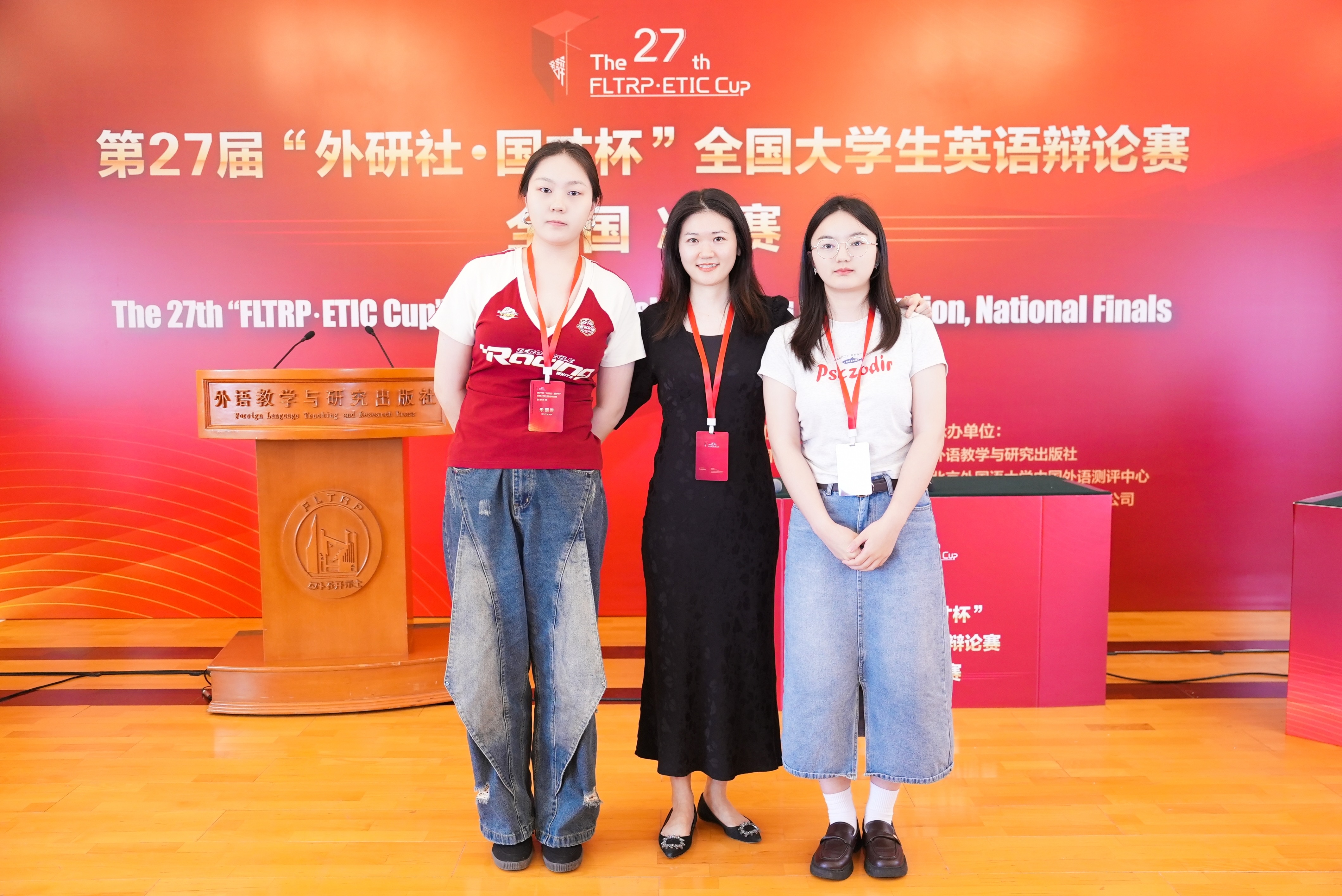 外国语学院共选派三支队伍参加此次全国决赛,在指导教师何莹和刘艳的悉心培训和倾力指导下,外国语学院2021级朱丽叶和李溪欣斩获国赛金奖,晋级全国32强;2022级潘芷萱和范明凤获国赛银奖;底特律绿色工业学院2023级郭天宇和外院2024级郭乐言获国赛铜奖。选手们在多轮辩论角逐中沉着冷静、思维敏捷,展现出扎实的语言功底、缜密的思辨能力及良好的团队协作精神,实现了外院在该项赛事奖项上的新突破。