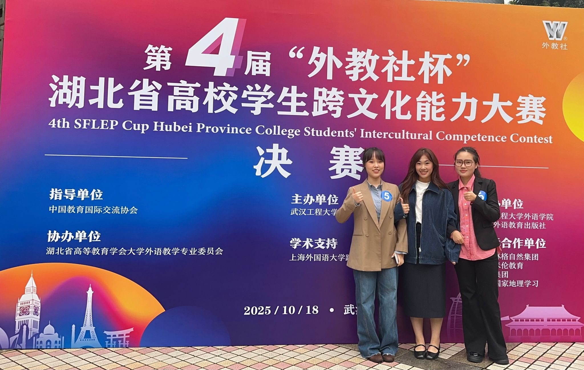 10月18日,在第四届“外教社”杯湖北省高校学生跨文化能力大赛决赛中,我院学生团队发挥出色,荣获中国学生组特等奖,直通全国决赛。参赛团队学生分别是来自外国语学院英语专业的潘芷萱、汉语国际教育专业的陈琳菲,以及底特律绿色工业学院电气工程及自动化专业的冯羽涵。