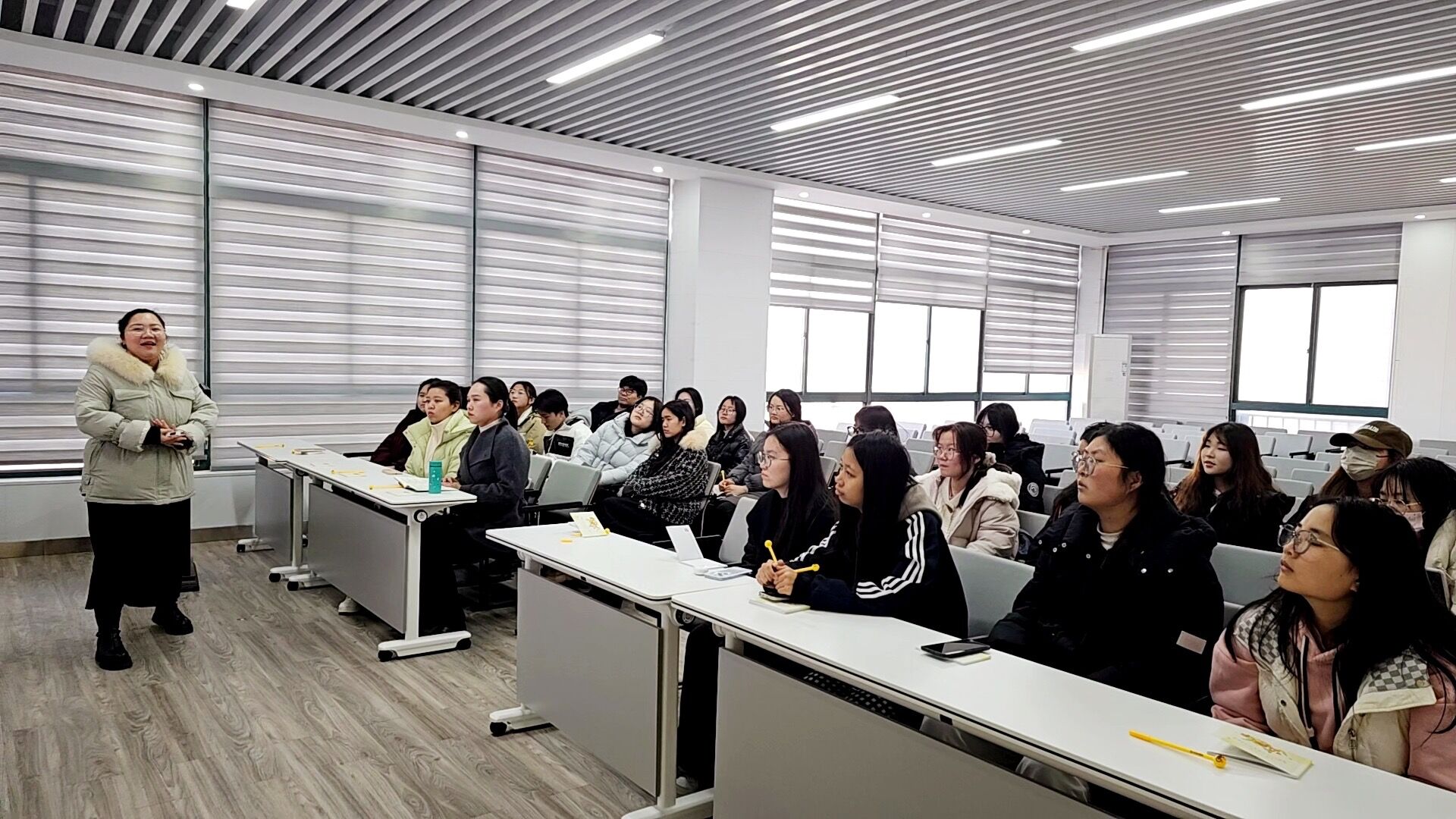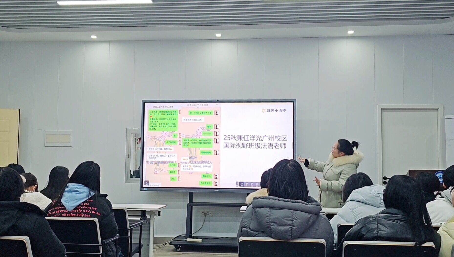 洋光小语种教育机构老师详细介绍了本次短学期实践的教学规划与课程内容。本次体验活动围绕语种前景与职业发展分析、语音基础与场景实践、学习方法与持续成长指导三大模块展开,系统介绍日语、韩语、法语等语种的就业需求与证书体系,帮助学生树立明确的学习目标;通过实用场景教学引导学生掌握语音规则与日常表达,实现从“听懂”到“会说”的跨越;并传授高效的语言习得策略与自主学习技巧,支持学生在课程结束后持续进步。 老师们表示,将通过互动式、沉浸式的教学设计,结合文化背景与真实语境,营造轻松积极的学习氛围,助力学生在短期内树立信心、敢于表达。