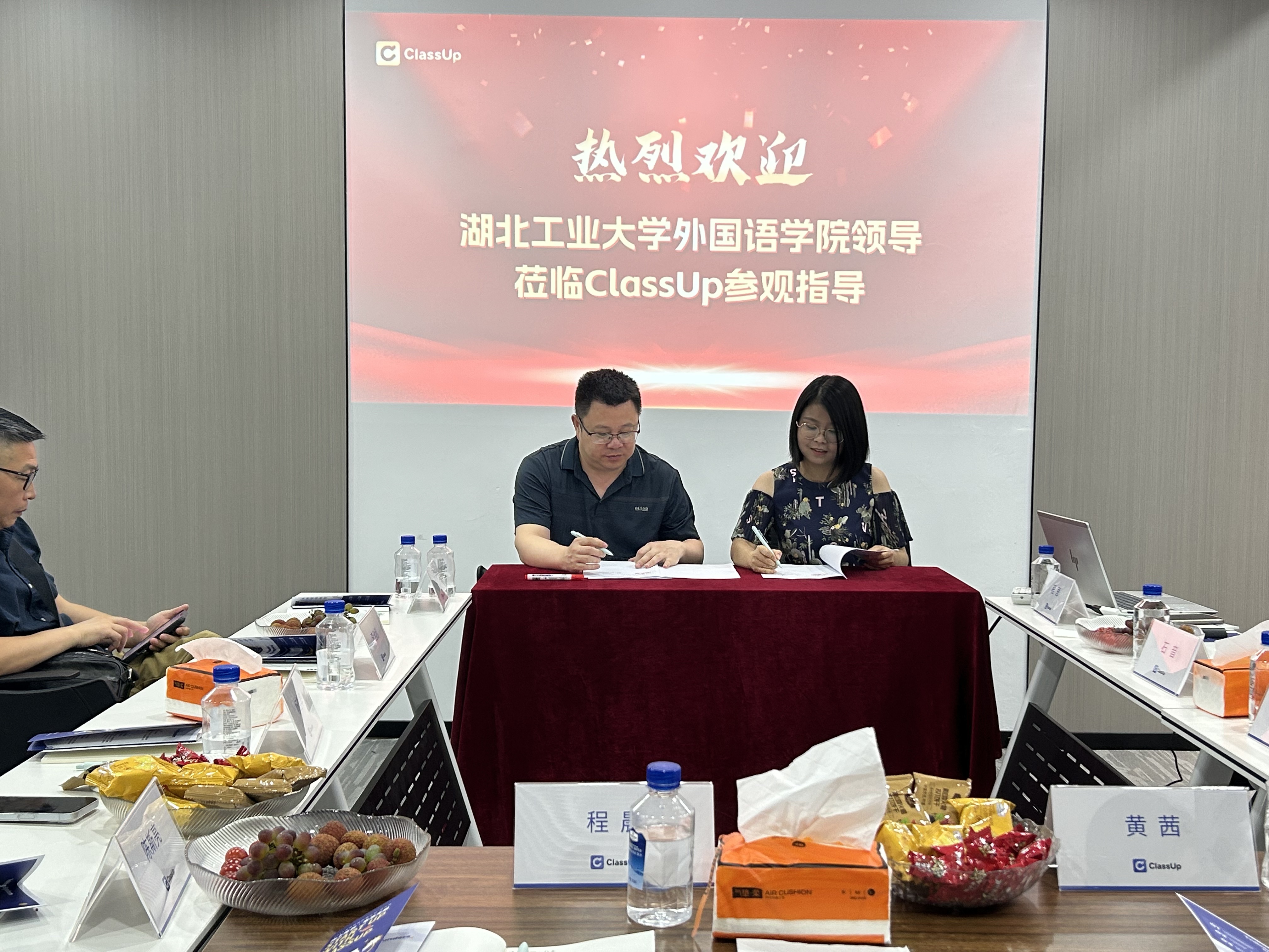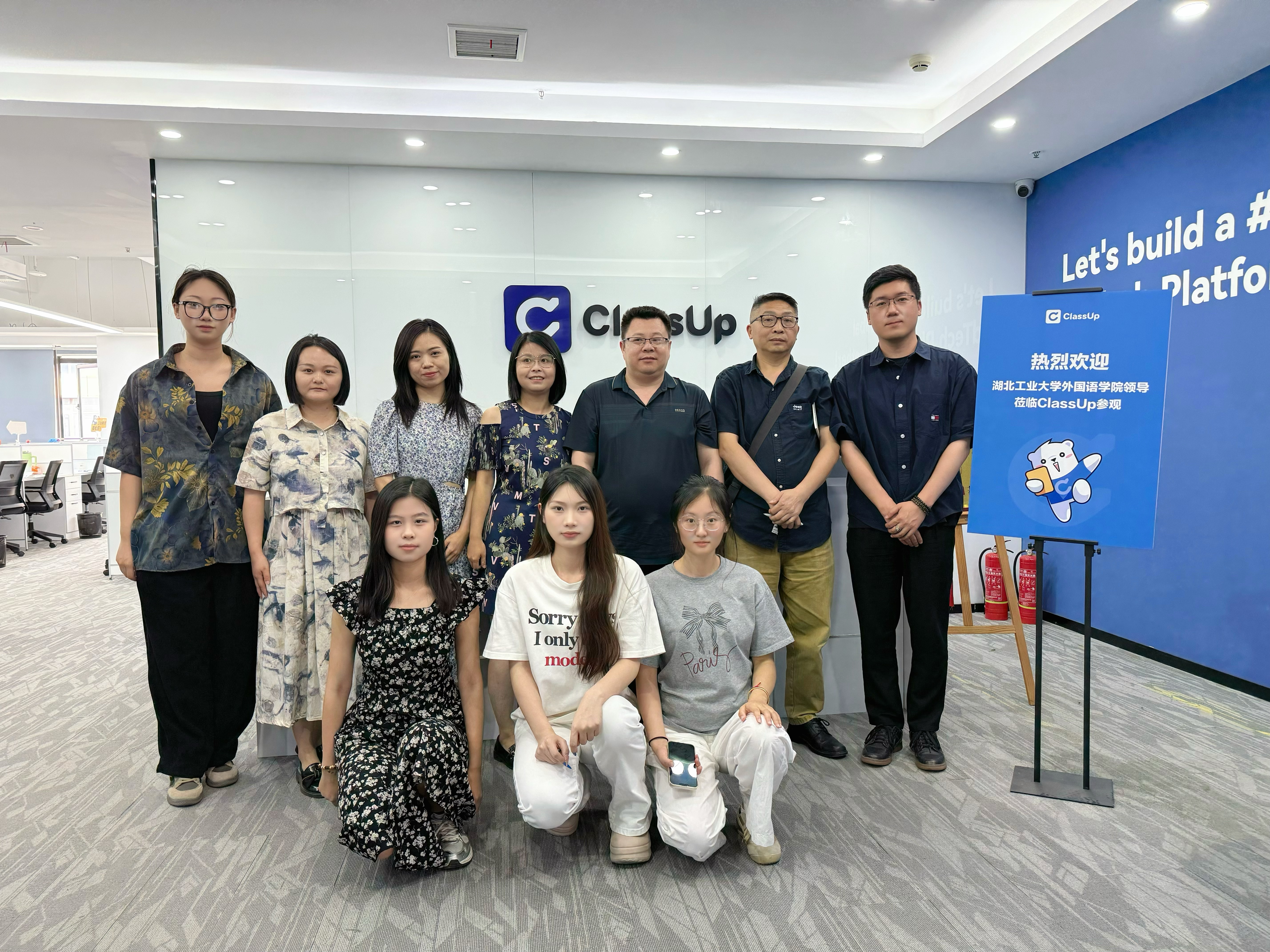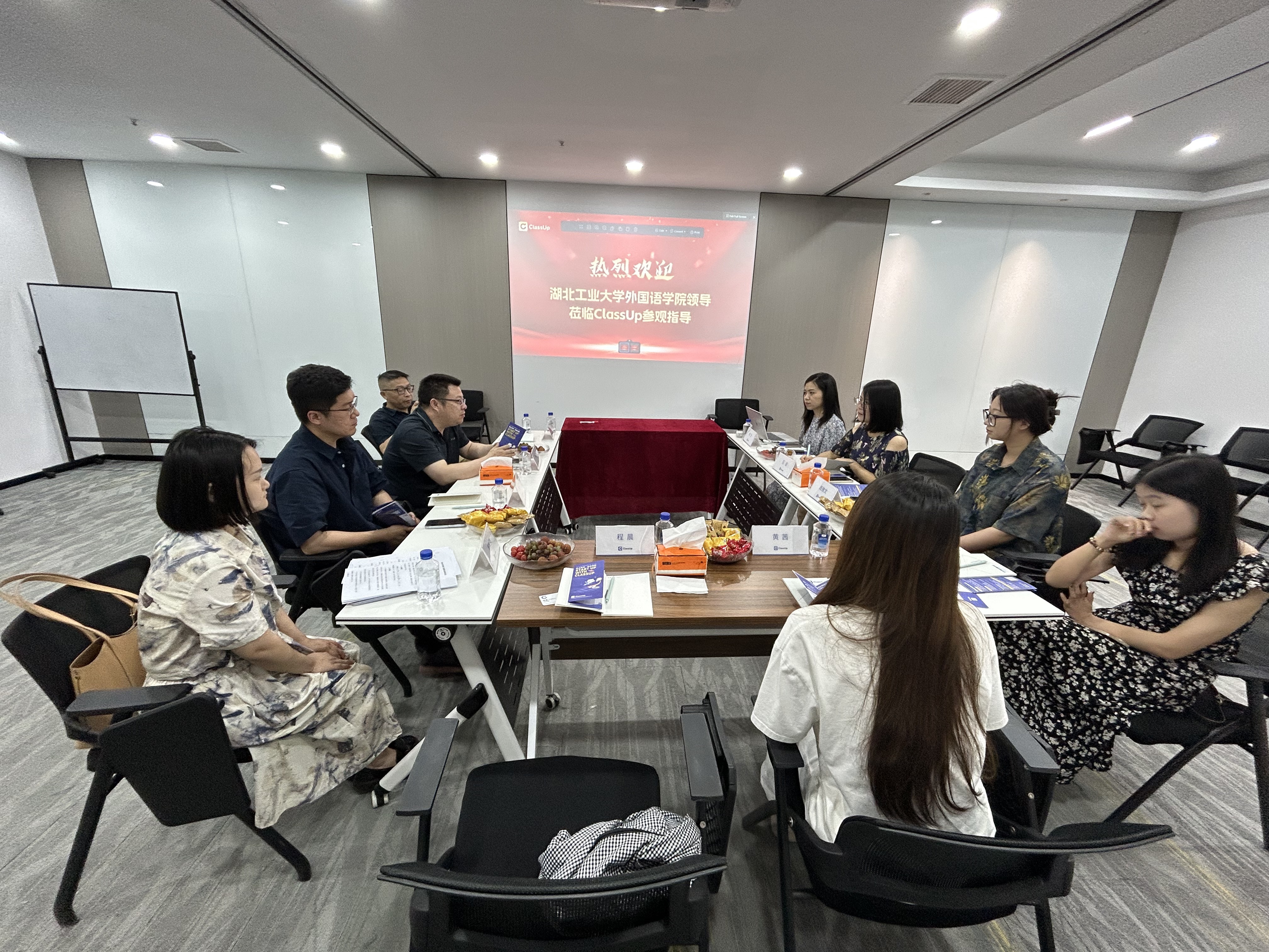 5月30日下午,外国语学院副院长李池利、MTI硕士生导师代表石诗、国际中文教育中心副主任杨哲华、研究生辅导员陈斯亮及研究生代表一行,前往武汉市光谷创业园ClassUp教育科技公司开展访企拓岗活动。