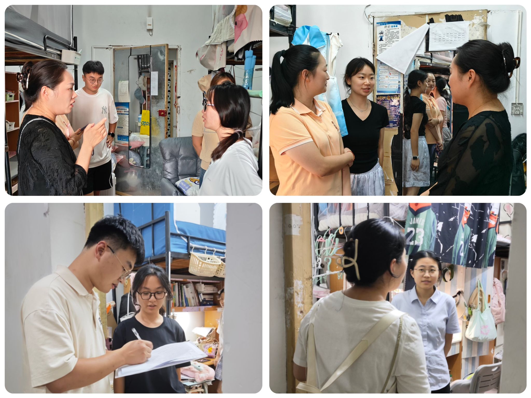9月2日,学院党委副书记胡文敏带队,全体辅导员老师走访学生宿舍,逐间细致排查宿舍情况,发现问题及时报修,并重点检查宿舍内是否存在大功率电器,插座是否存在私拉乱接现象,明确告知学生违规行为的潜在风险,引导学生树立“安全无小事”的防范意识。此间,老师们还详细了解了同学们假期情况和新学期计划安排,鼓励毕业生积极参加校园双选会,及时调整就业方向;引导低年级学生做好学业和生涯规划,积极参加实践活动,找准方向。