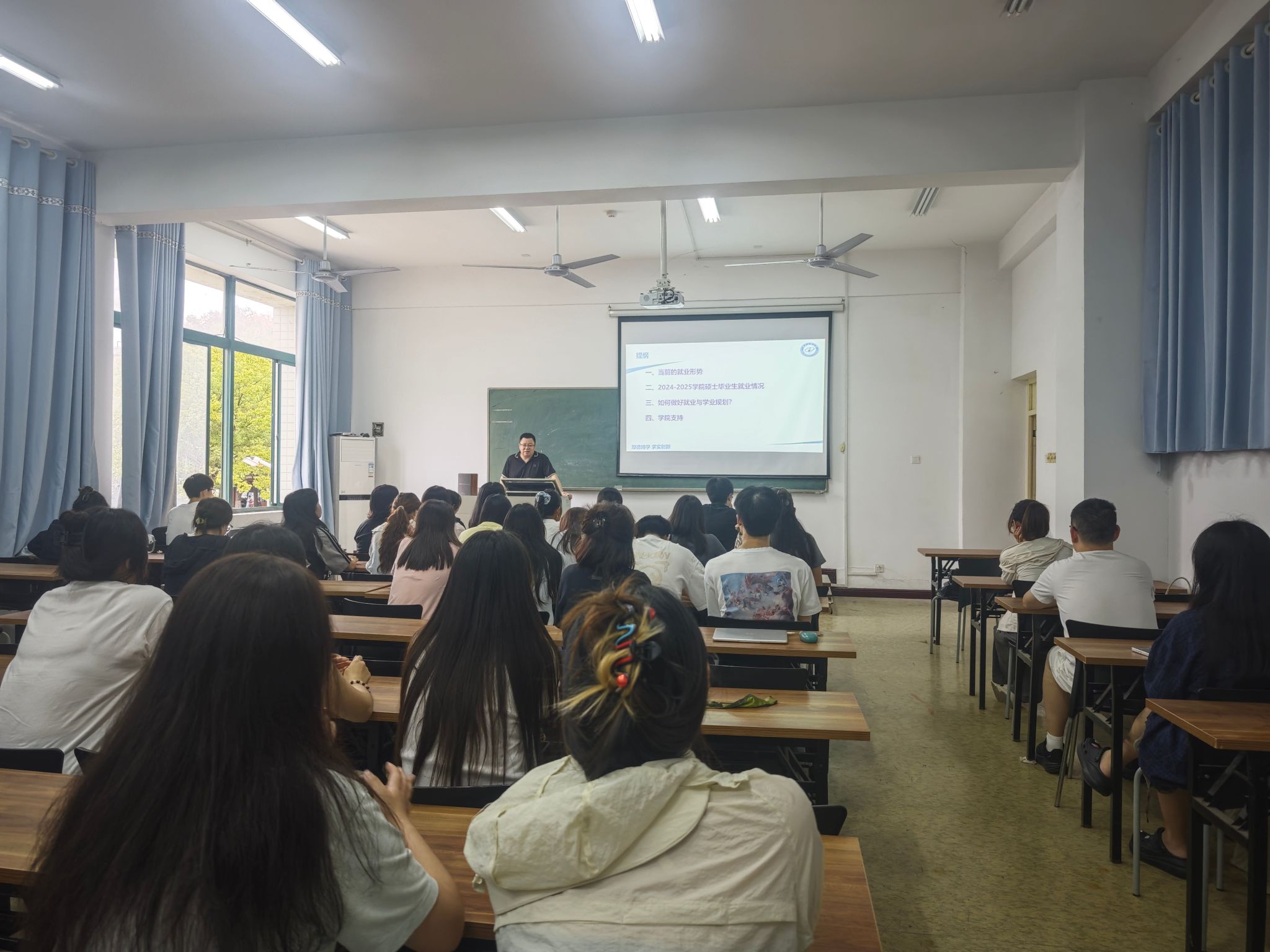 9月18日下午,学院在文科楼102教室召开了2026届毕业研究生就业动员大会,全体在校毕业生参会,会议由辅导员陈斯亮老师主持。学院副院长李池利围绕当前就业形势、往届毕业生的就业情况、学业与职业规划,以及学院的支持政策四个方面作了专题讲解与指导。