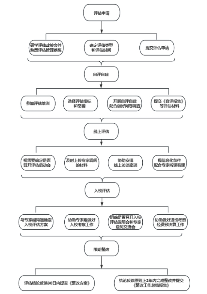 二是建立评估整改工作机制。学校应建立整改工作机制,全面开展整改。整改工作重在长效机制、人才培养质量保障体系等方面的建设,要扎扎实实整改,不能书面整改、虚假整改。建立督查督办和问责制度,定期对整改工作进行督查,持续追踪整改进展,确保整改取得实效。