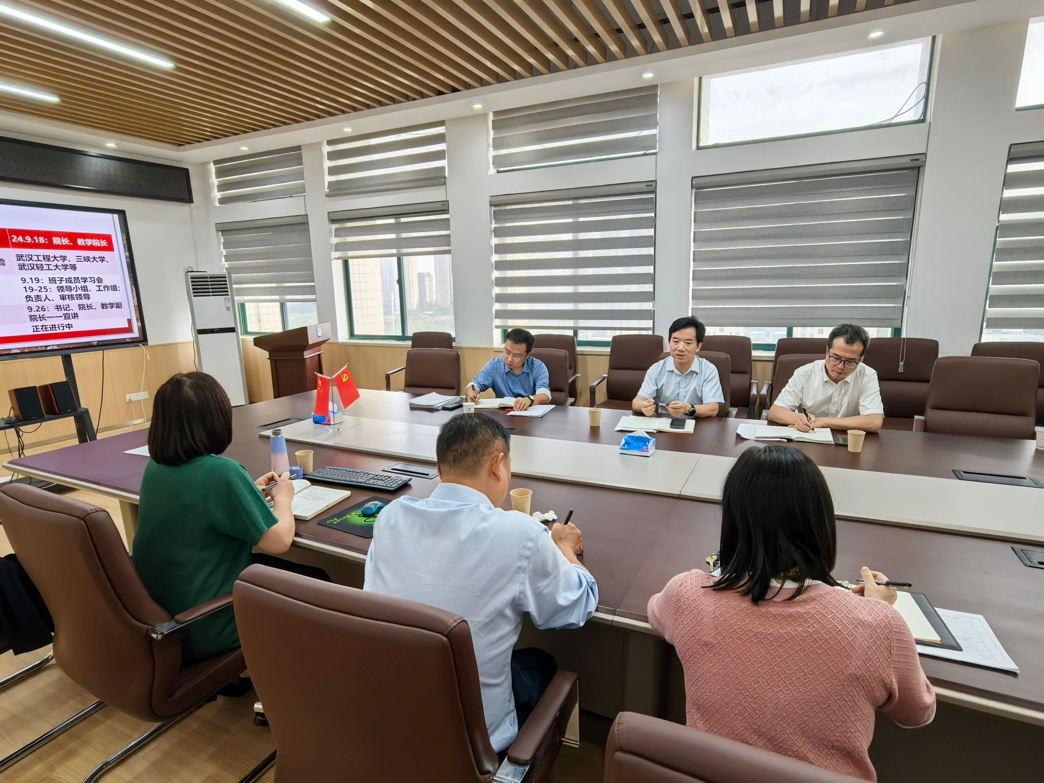 鲁修红对学院本科教育教学情况及评估工作进展情况进行了汇报。她首先简要介绍学院的历史沿革、学科布局、本科专业数量与结构、各类全日制在校生规模、专任教师规模与结构、基本办学条件等,接着介绍了学院近年来本科教育教学工作中所取得的成就与荣誉。随后,针对审核评估工作汇报了学院目前的进展情况、存在的困难和下一步改进的措施。学院与会人员针对审核评估工作不同方面进行了交流。